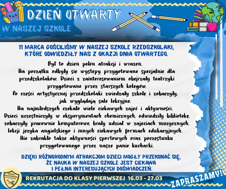 RELACJA Z PRZEBIEGU DNIA OTWARTEGO W NASZEJ SZKOLE - kliknij